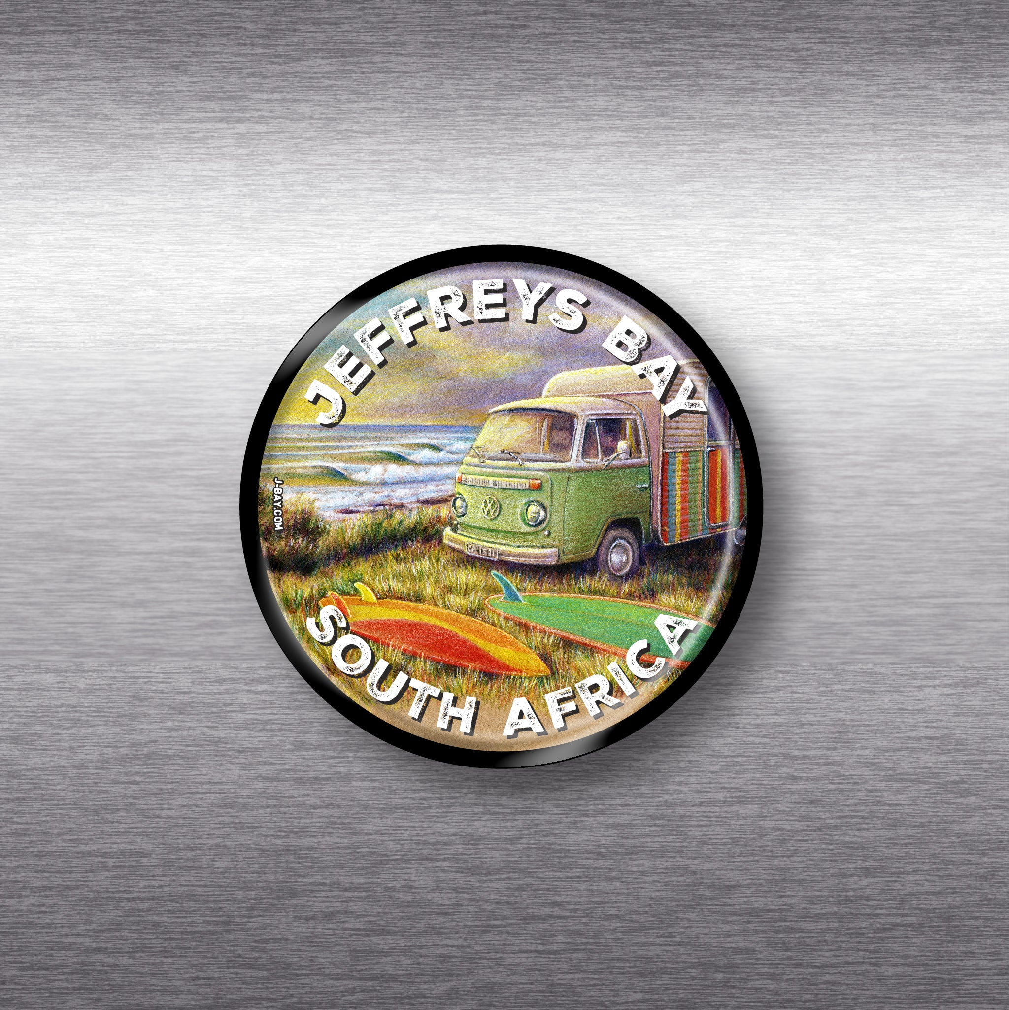Featuring an iconic Autovilla camper illustration by Yvonne Robinson, this 5cm magnet features a 3mm Supawood base with a non-fade art print topped with high gloss resin and strong magnet on the rear. Made by hand near here in J-Bay, this funky fridge magnet will bring a great surf vibe to your fridge.