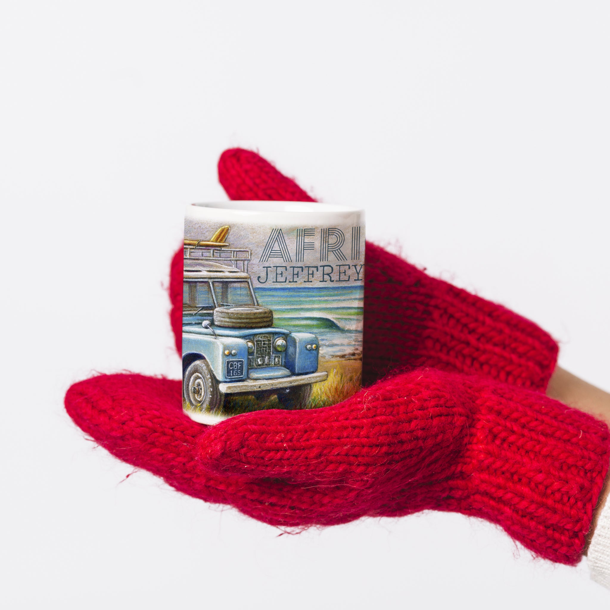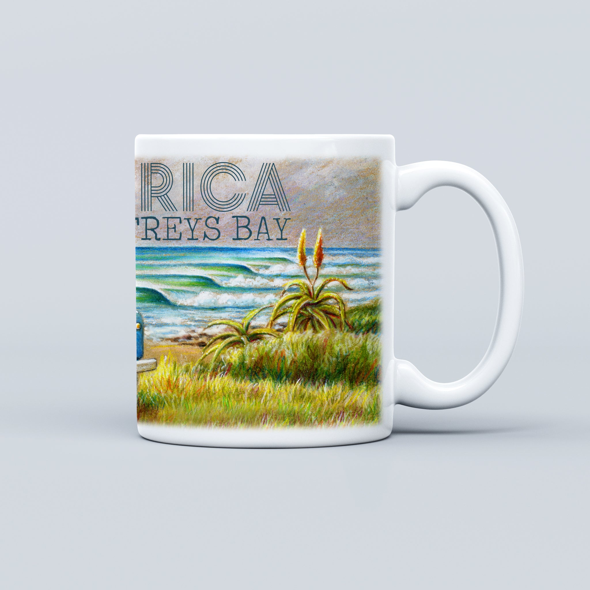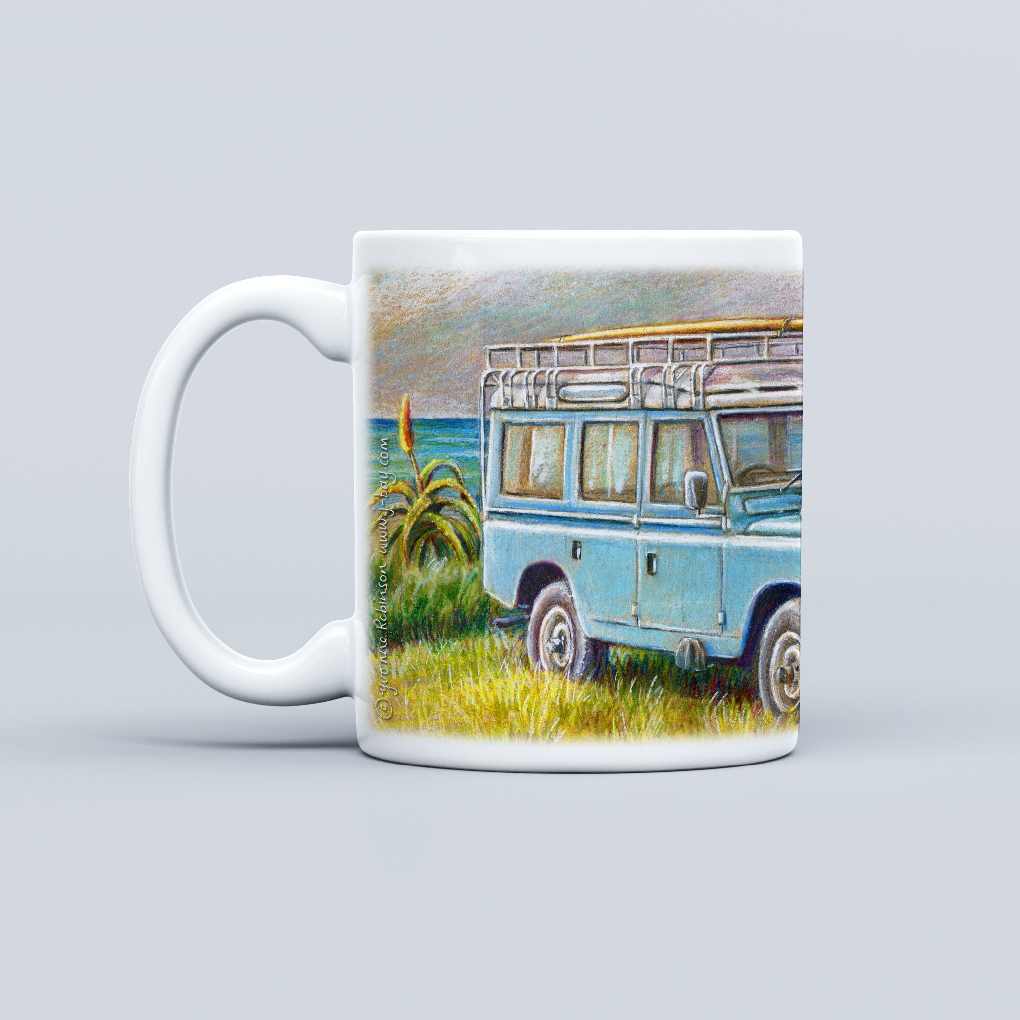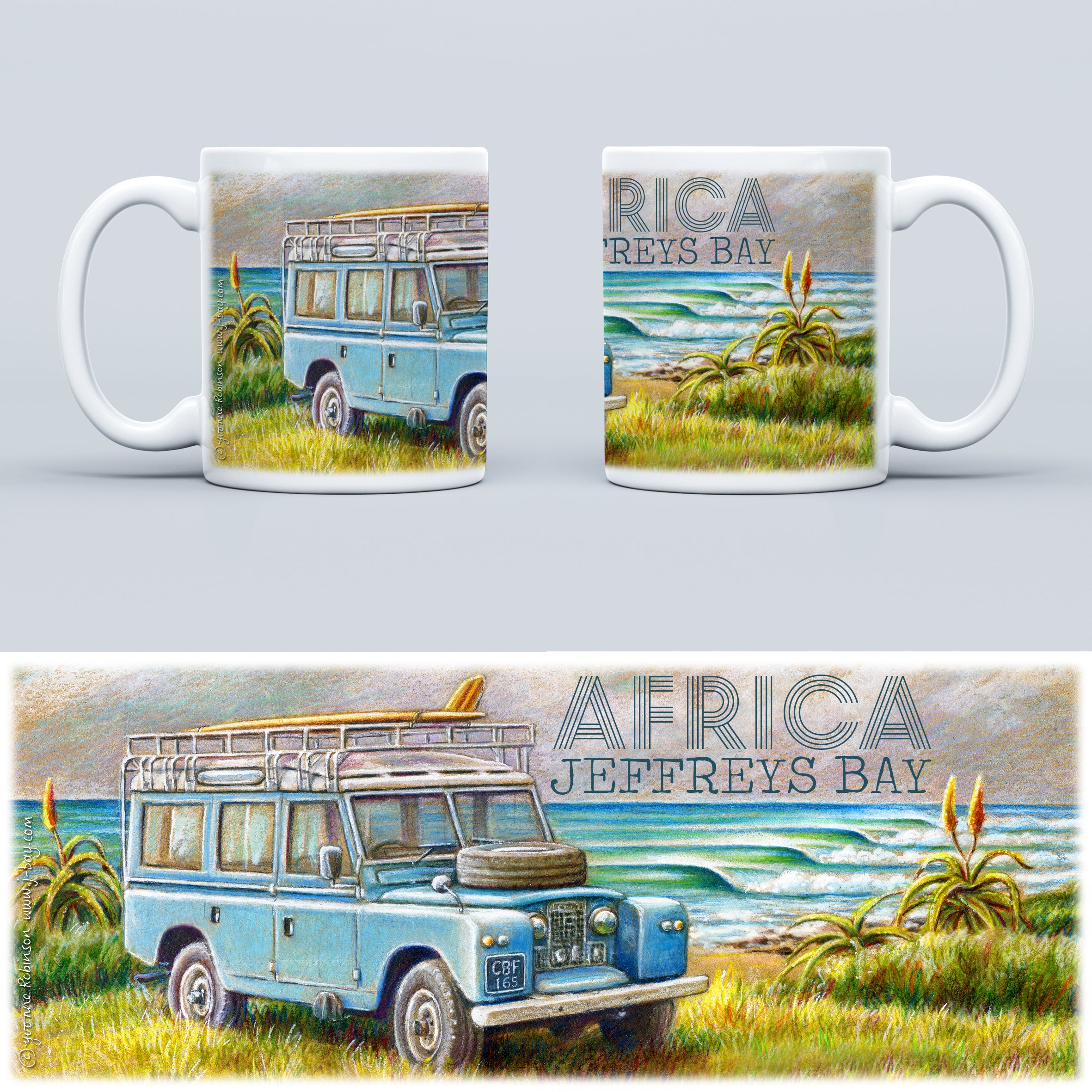 Full size coffee mugs featuring unique wraparound designs by local artist Yvonne Robinson and photographer Garth Robinson.
