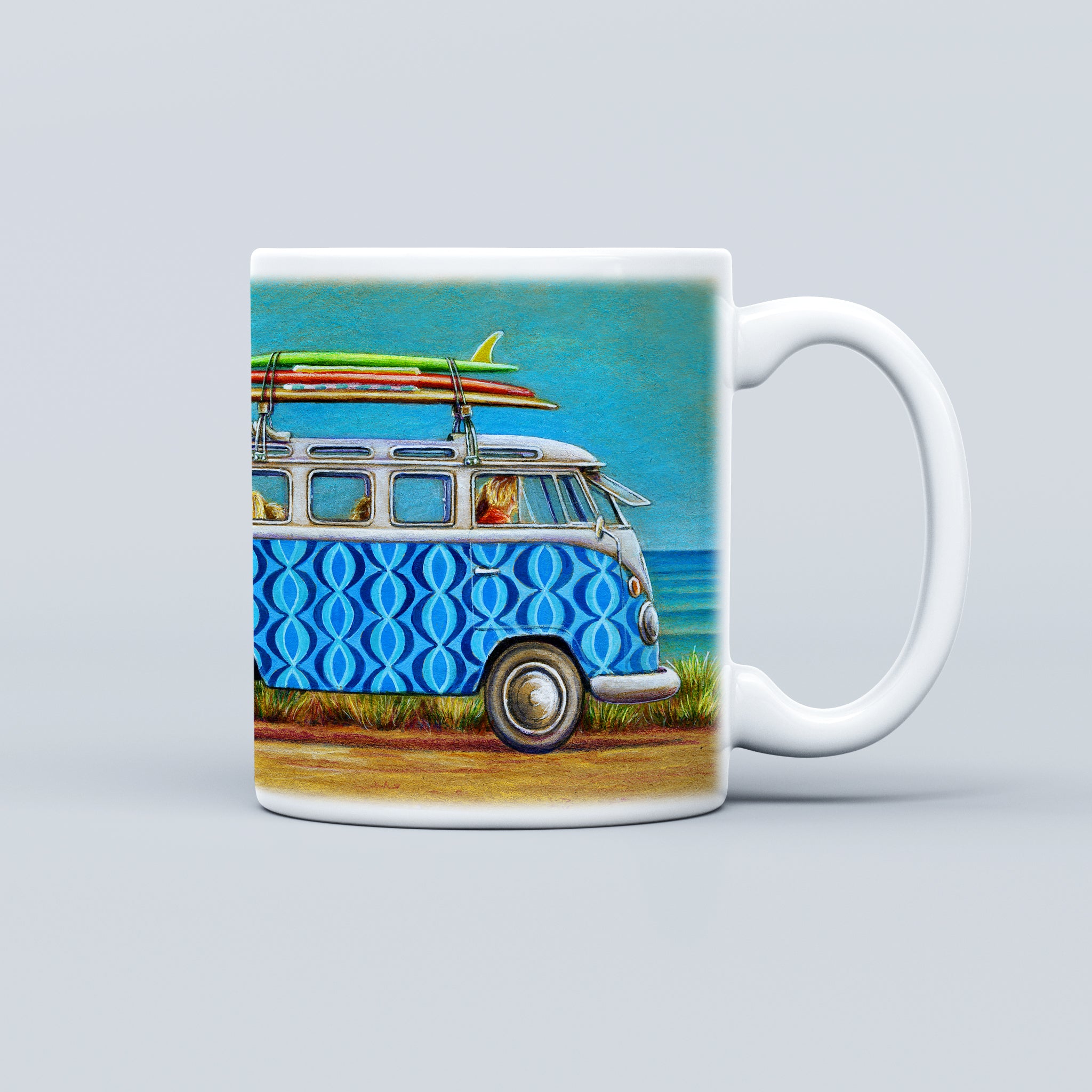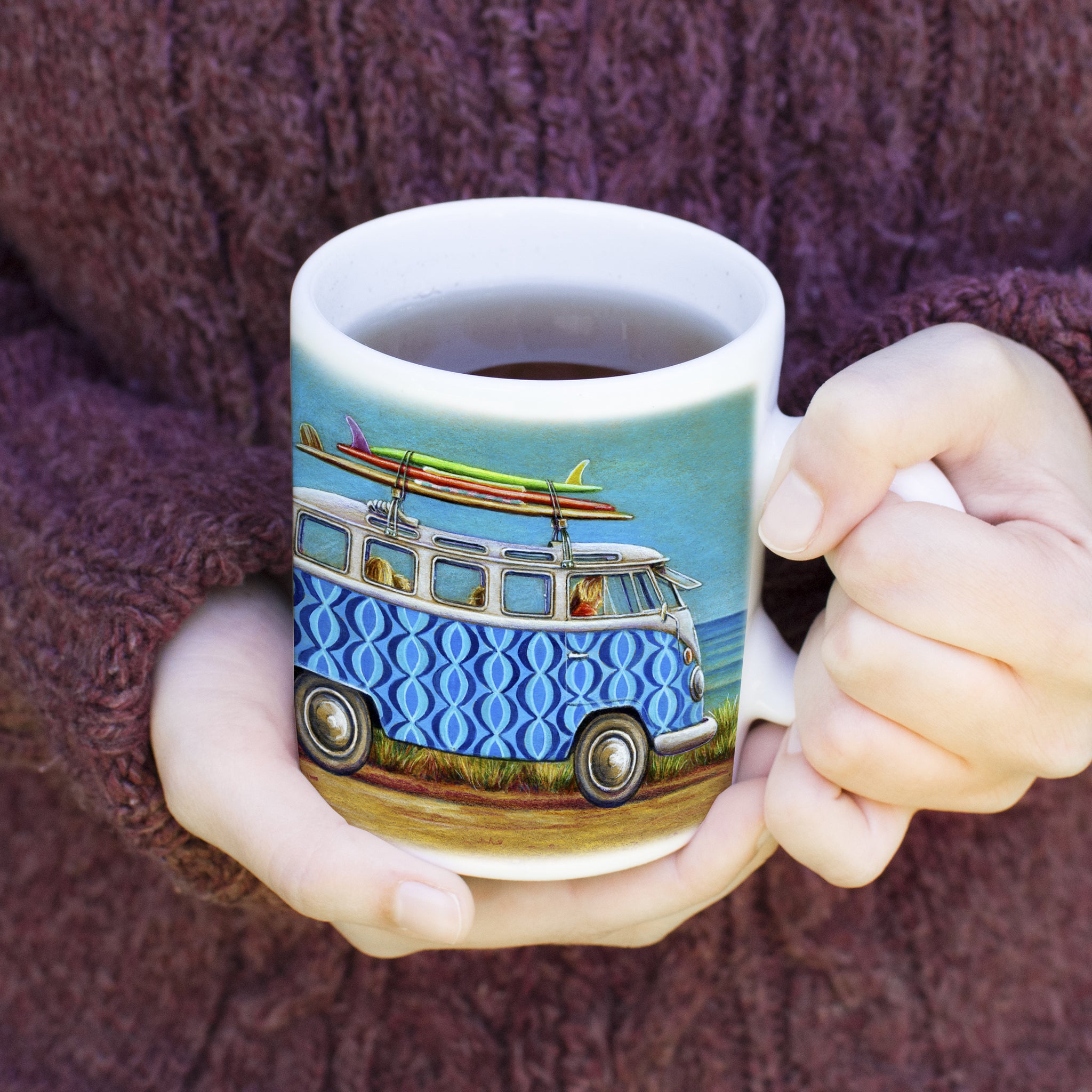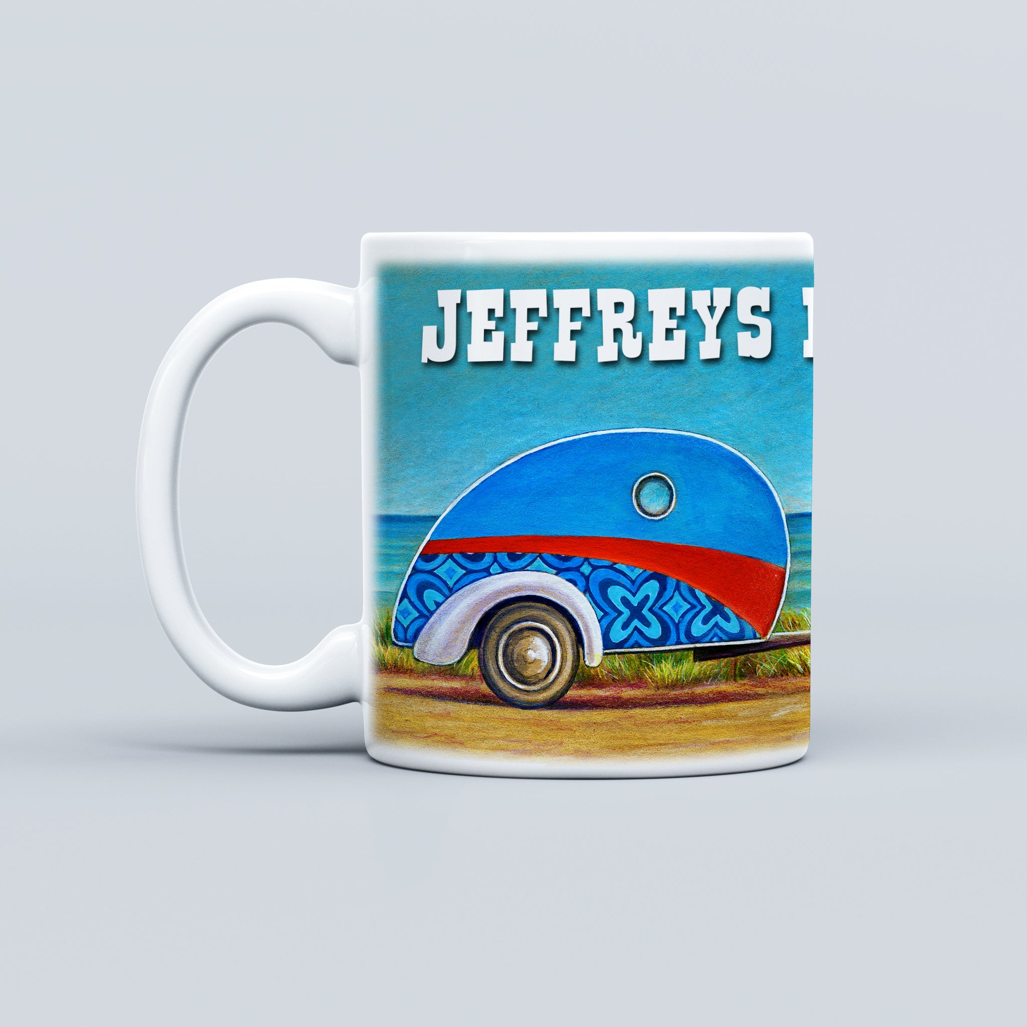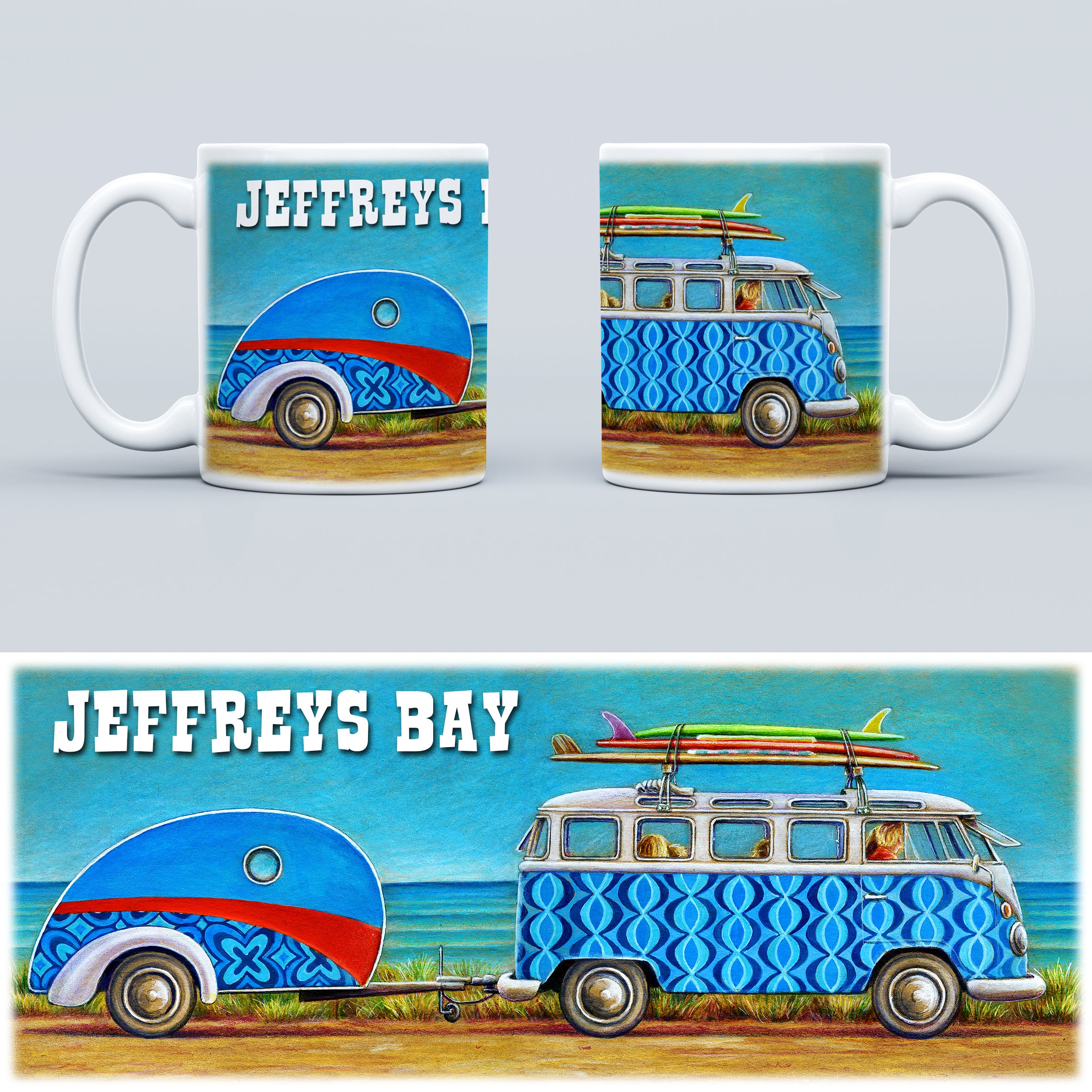 Full size coffee mugs featuring unique wraparound designs by local artist Yvonne Robinson and photographer Garth Robinson.