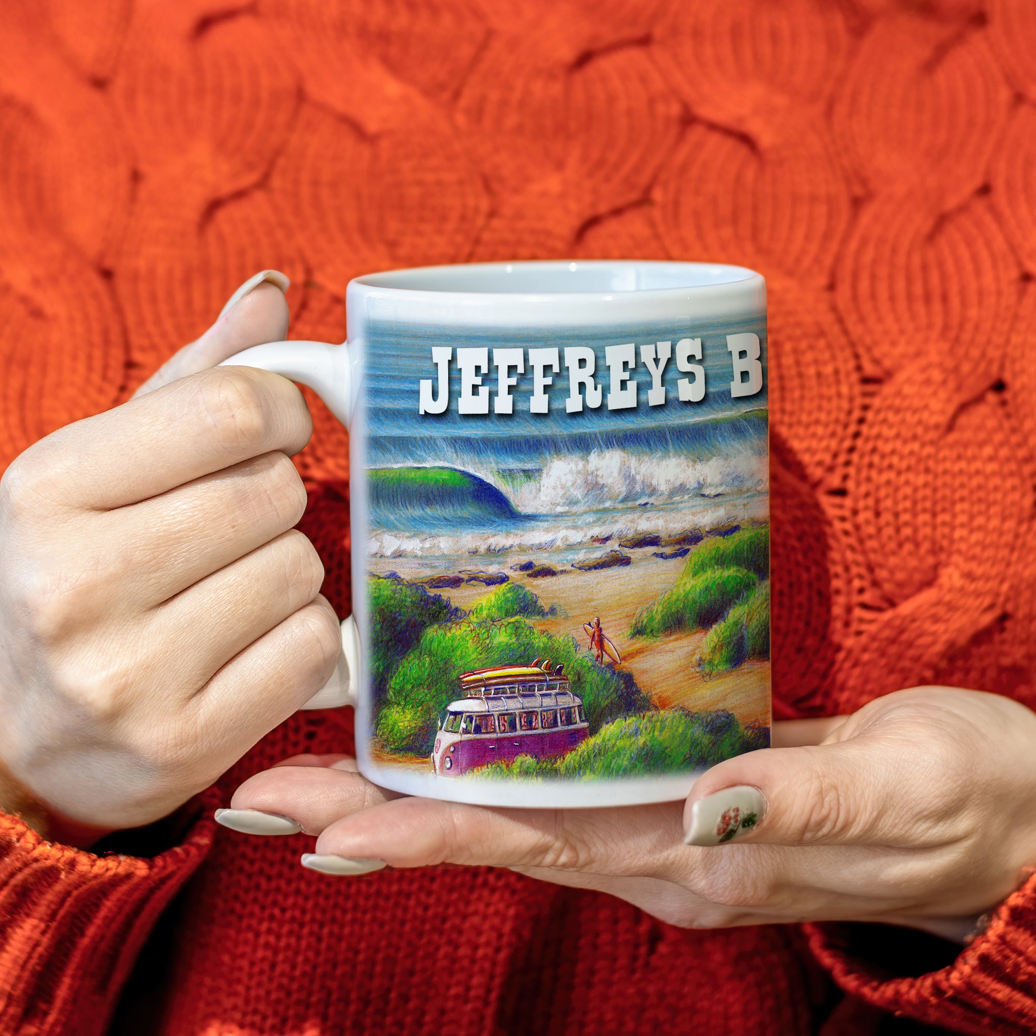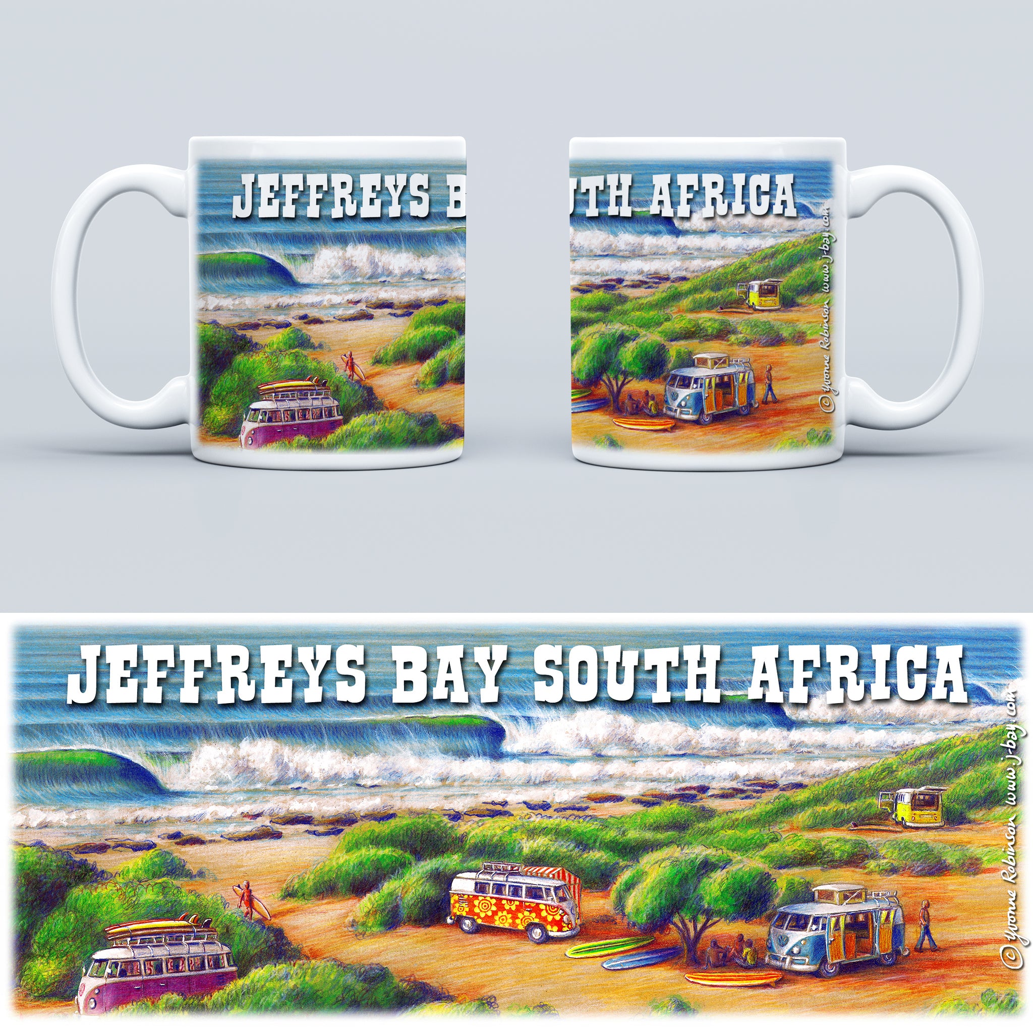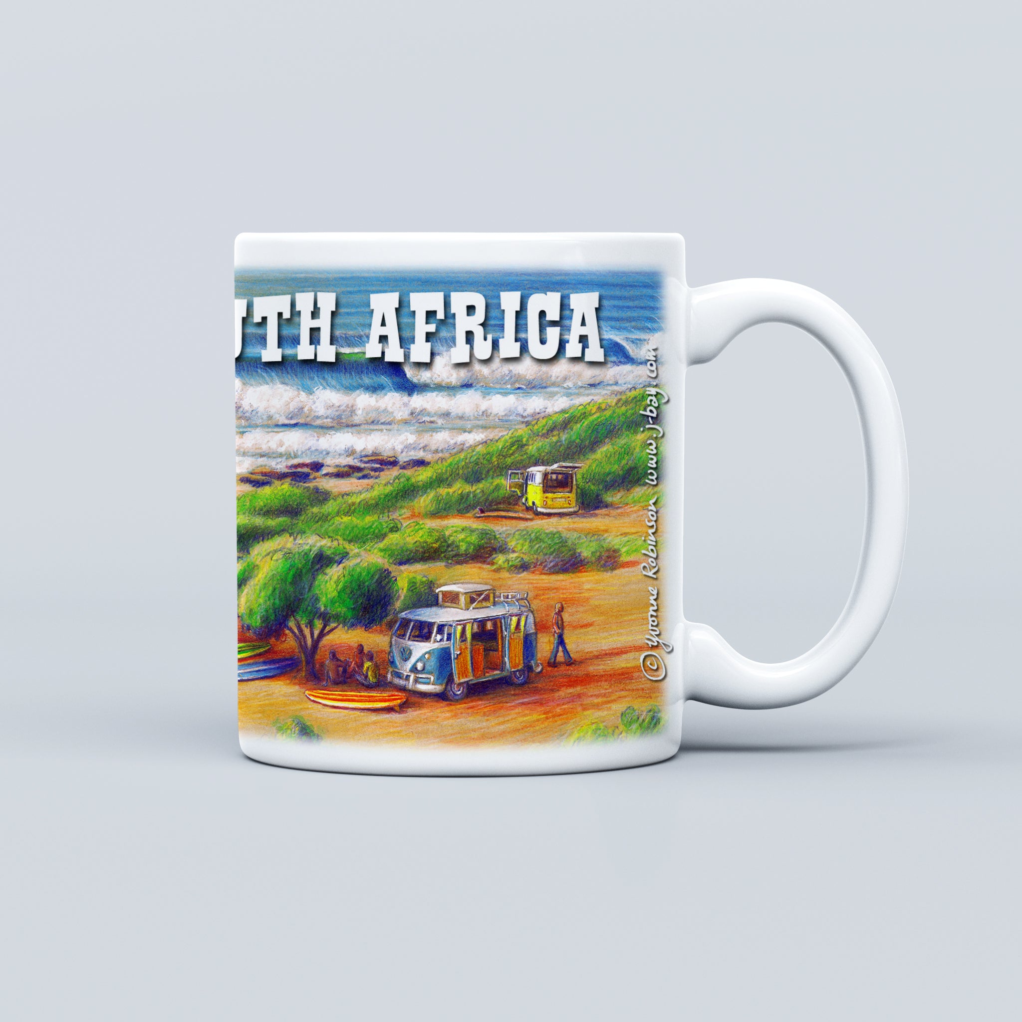 Full size coffee mugs featuring unique wraparound designs by local artist Yvonne Robinson and photographer Garth Robinson.