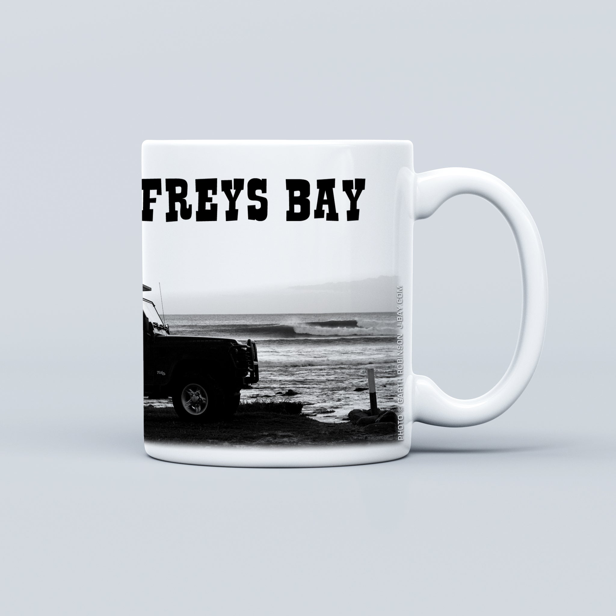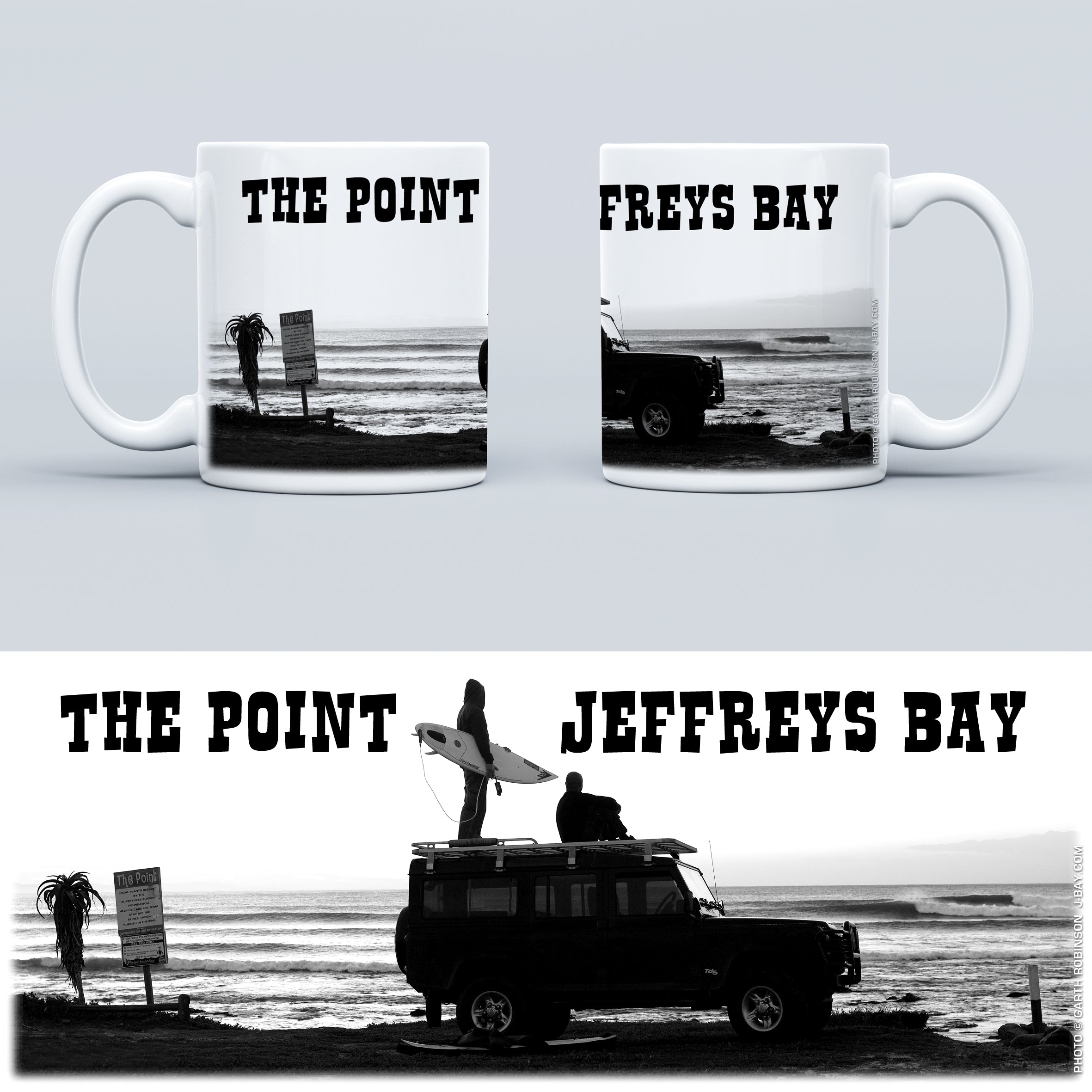 Full size coffee mugs featuring unique wraparound designs by local artist Yvonne Robinson and photographer Garth Robinson.