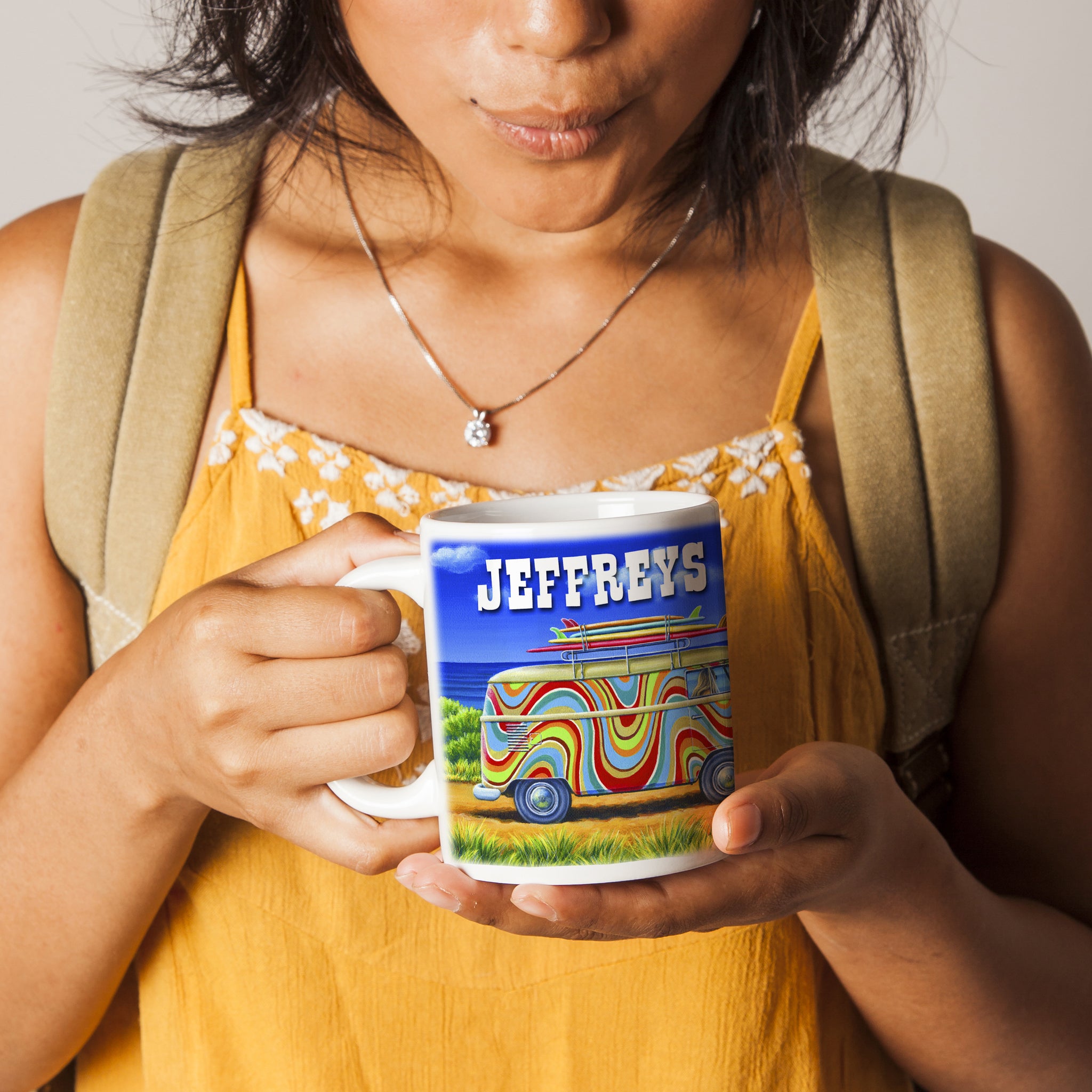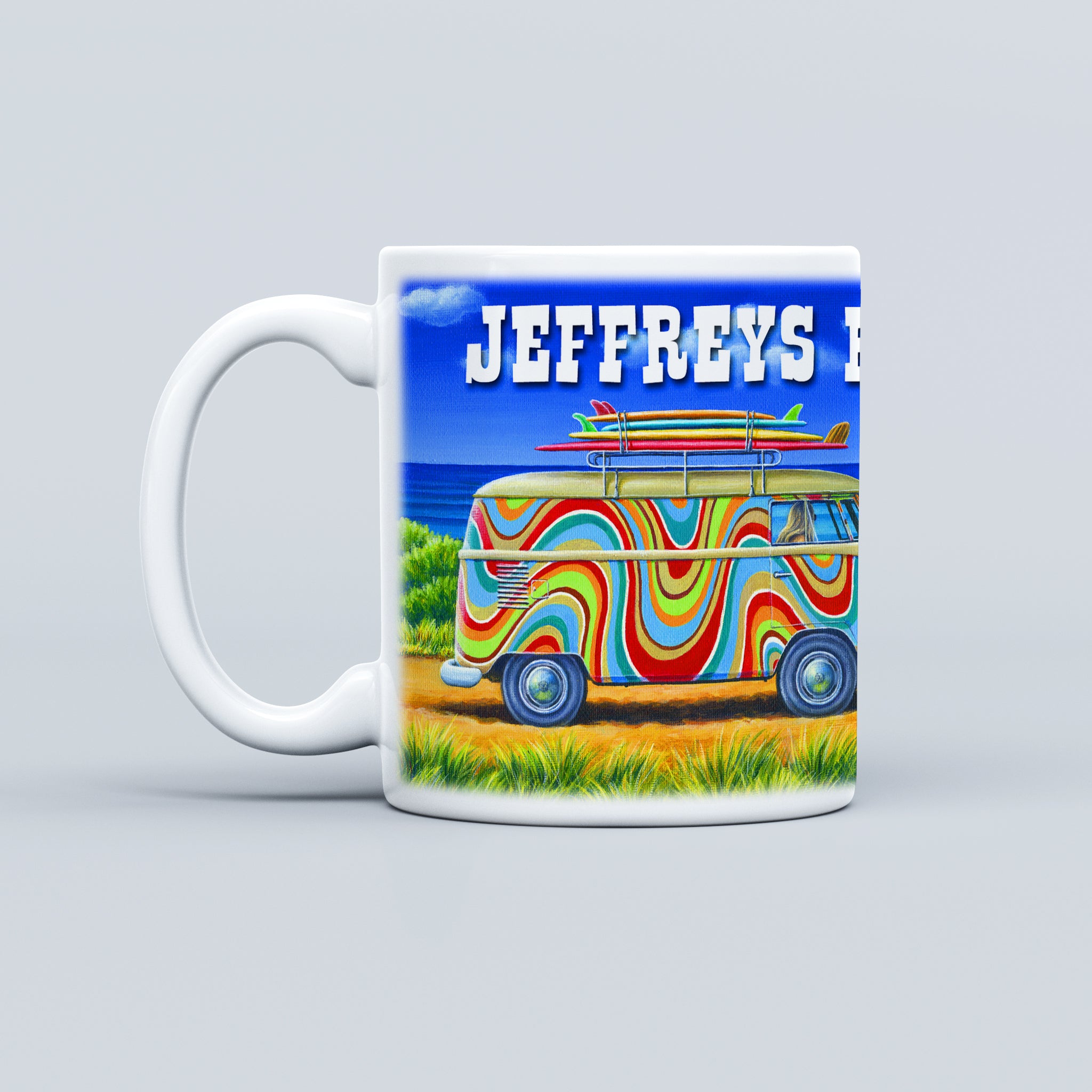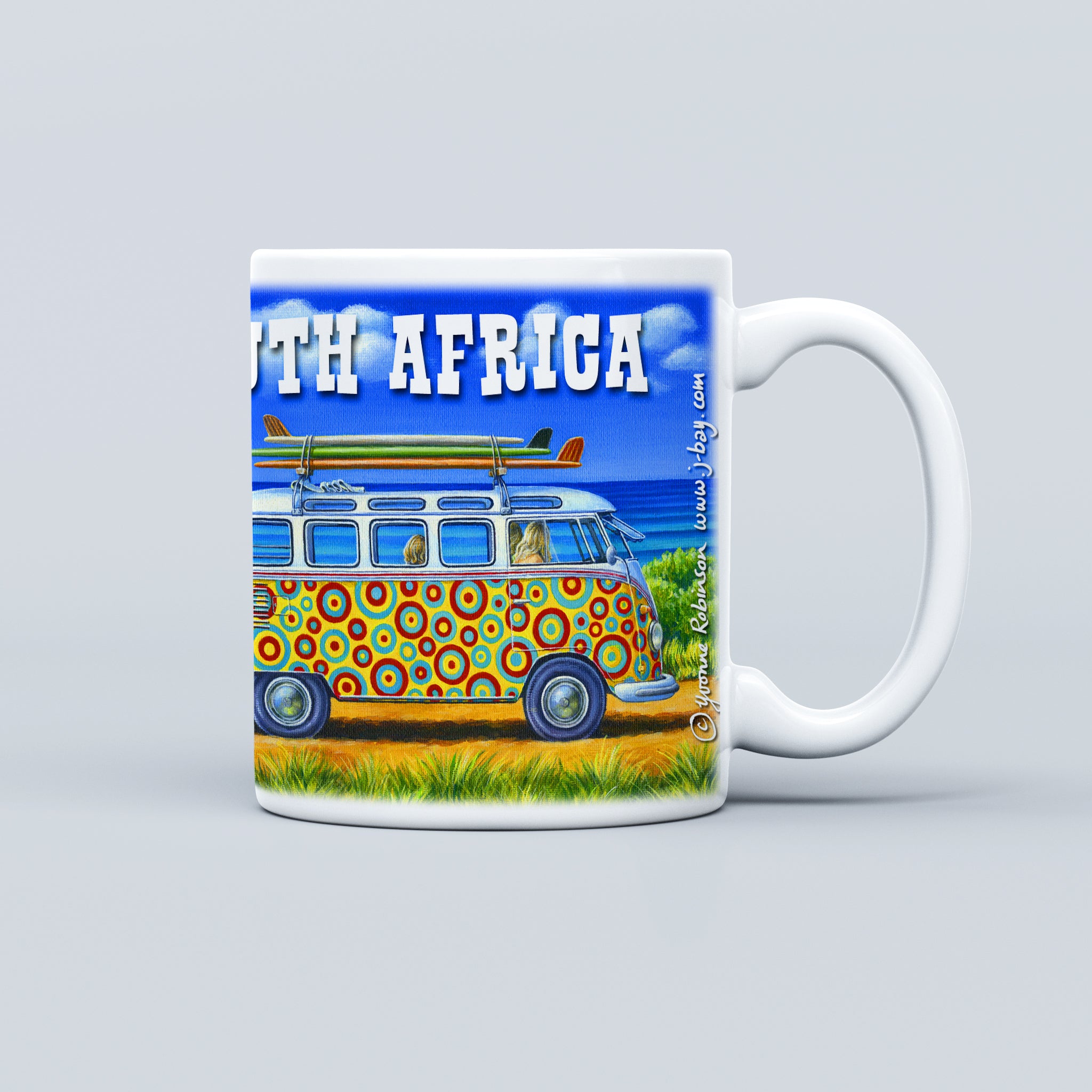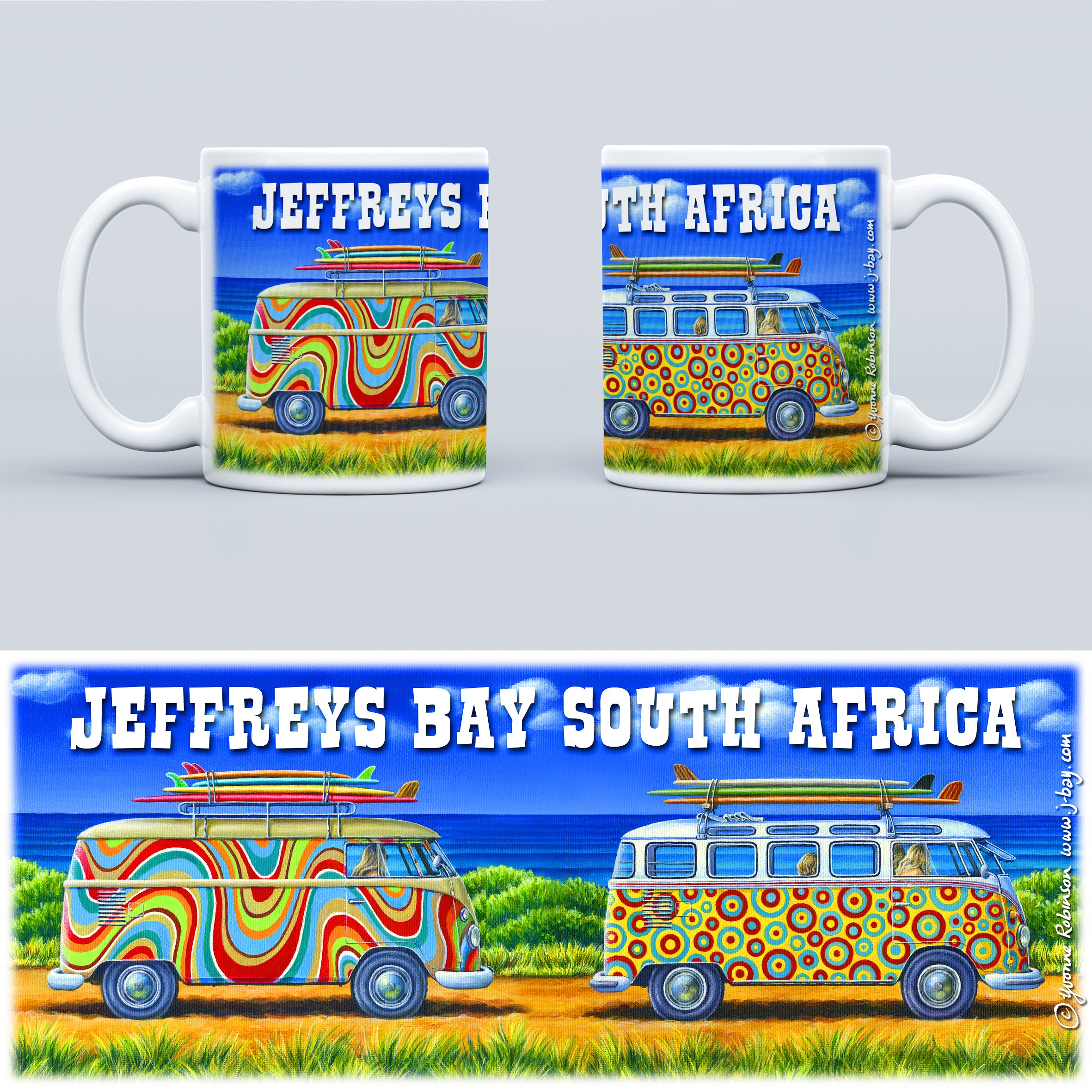 Full size coffee mugs featuring unique wraparound designs by local artist Yvonne Robinson and photographer Garth Robinson.