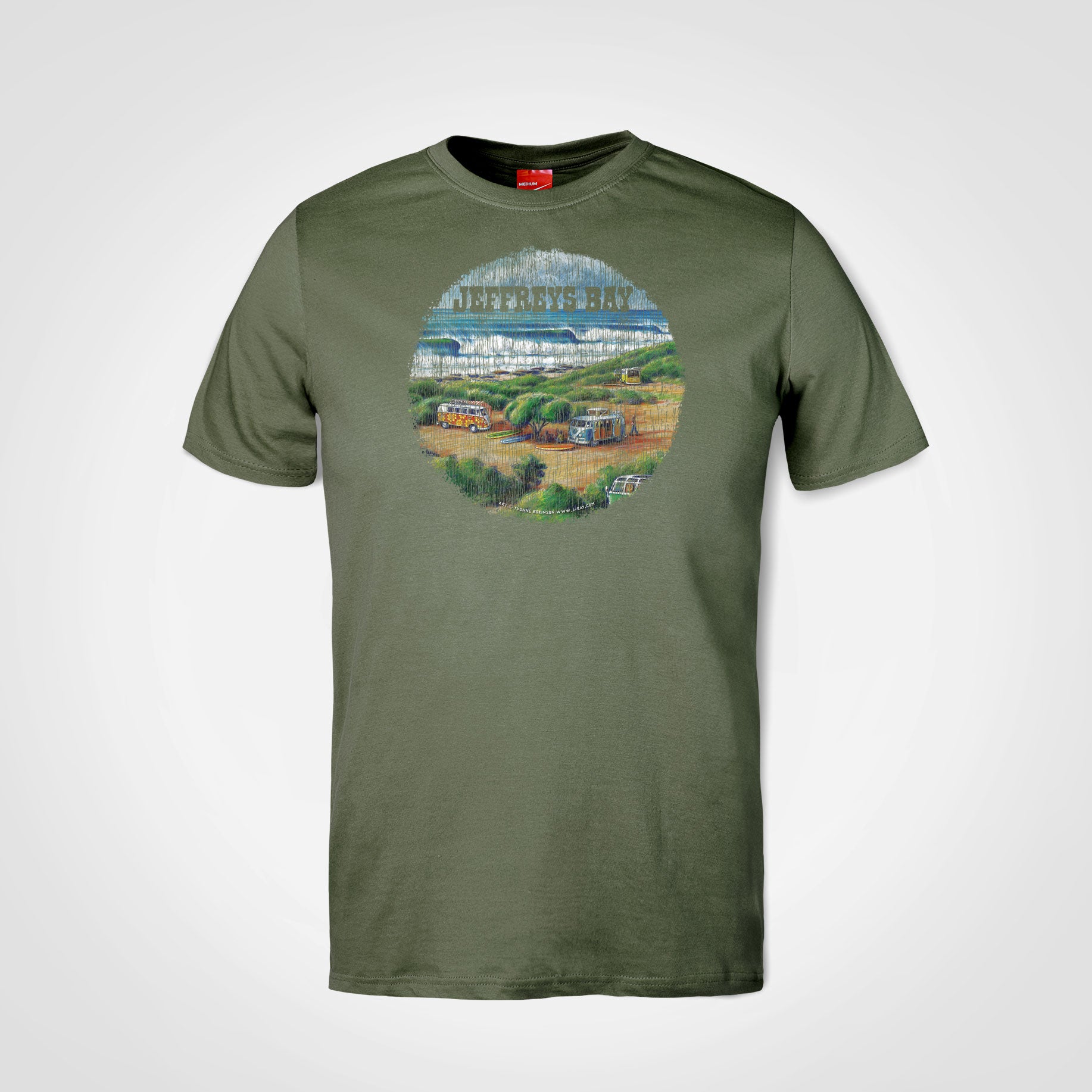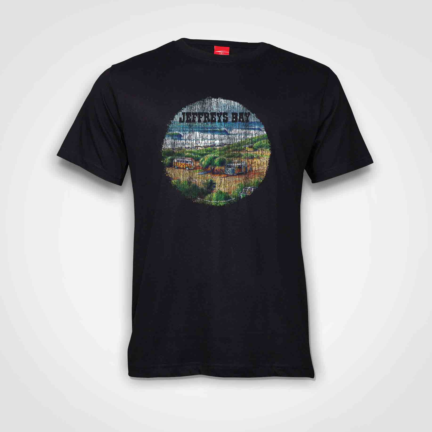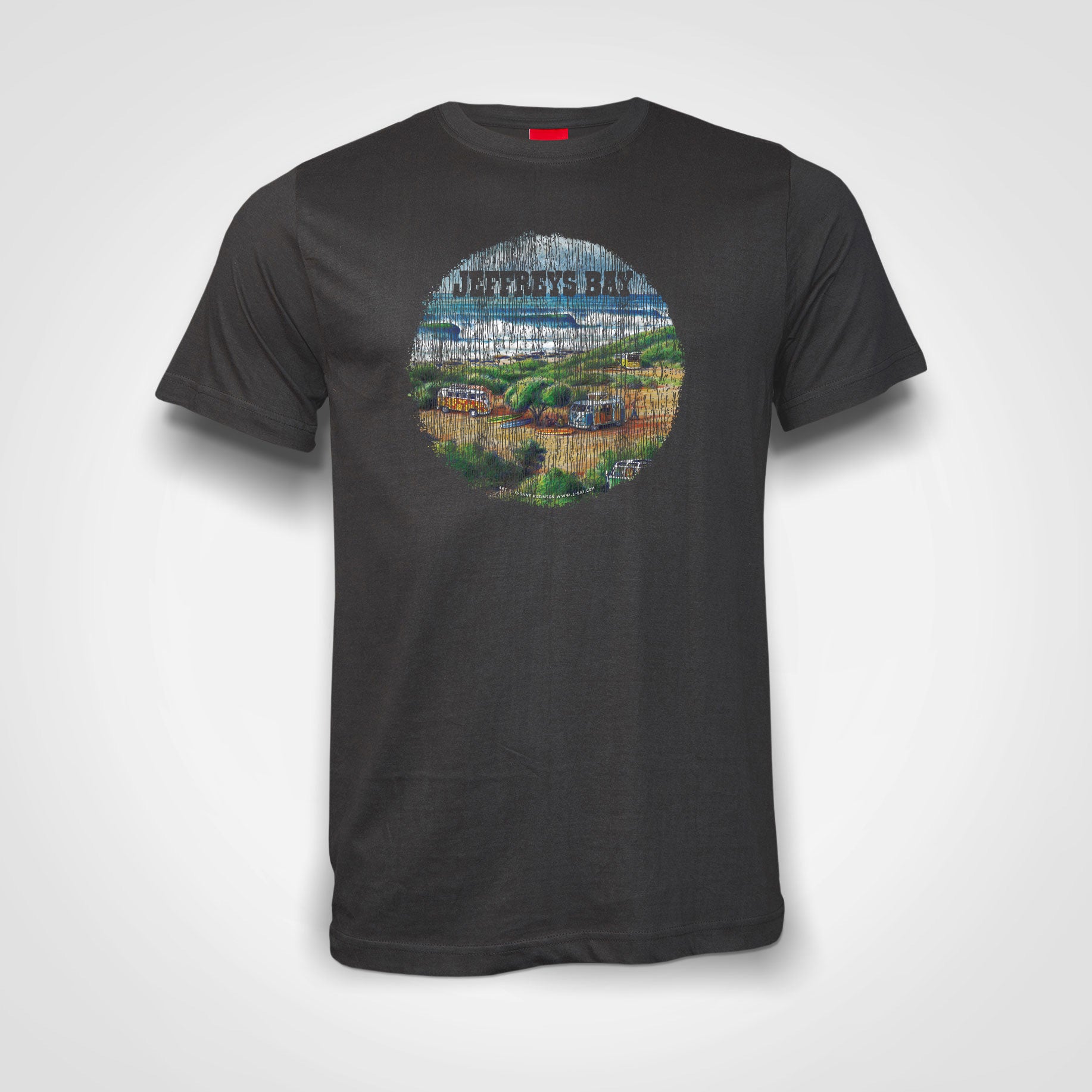 Featuring iconic Kombis at Point illustration by local Jeffreys Bay artist Yvonne Robinson, this tee shirt is 165gm pure cotton. The designs are created here in Jeffreys Bay and then printed onto the garments using state-of-the-art DTF printing that faithfully reproduces the artist's original artwork.