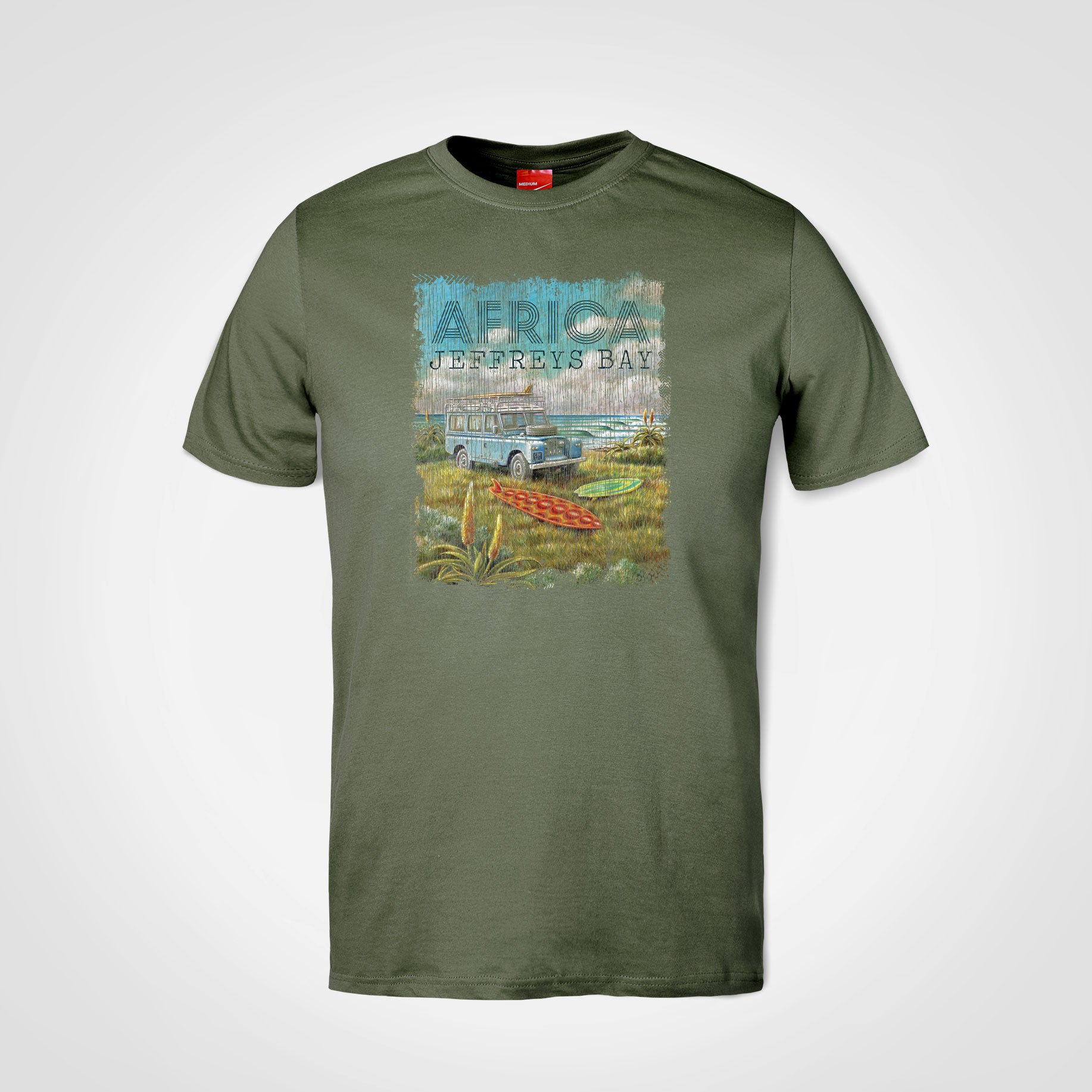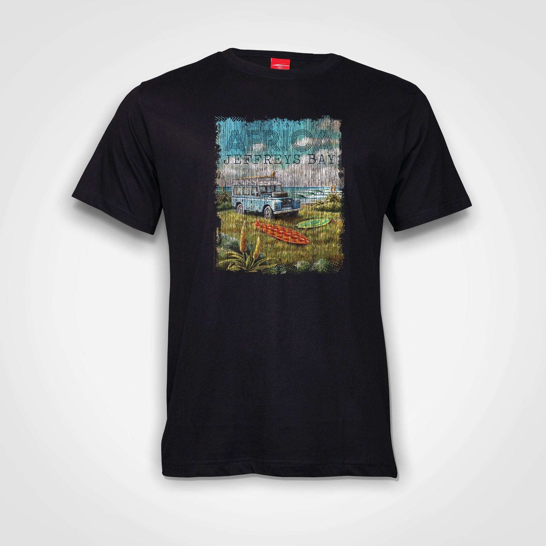 Featuring signature Landrover at Supers artwork by local Jeffreys Bay artist Yvonne Robinson, our tee shirts are made from 165gm pure cotton. The designs are all created here in Jeffreys Bay and then printed onto the garments using state-of-the-art DTF technology that faithfully reproduces the artist's original artwork.