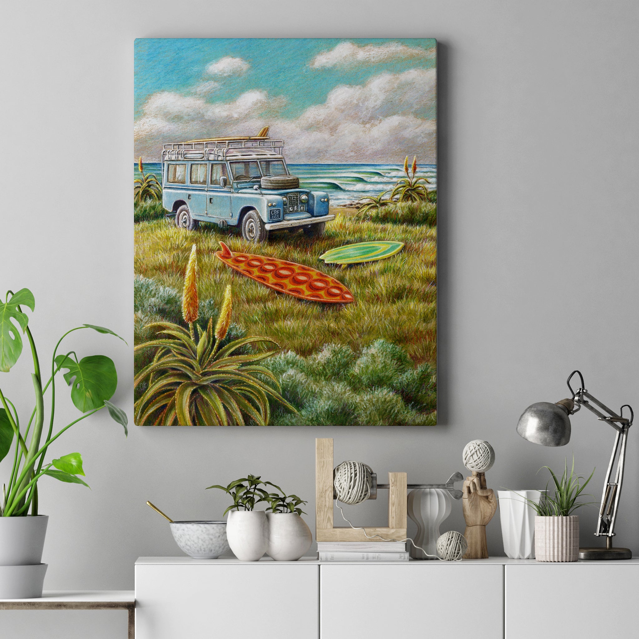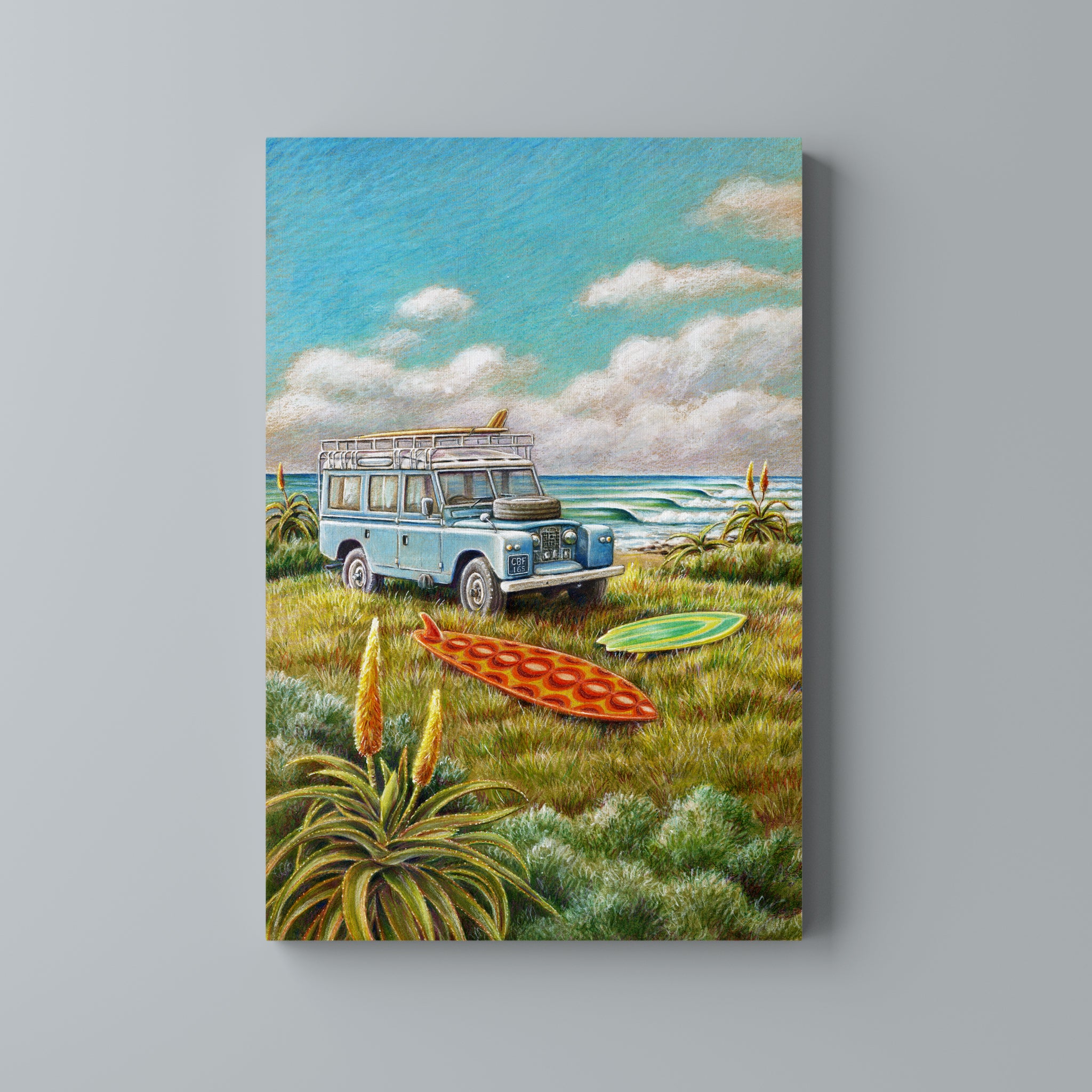 Featuring iconic Landrover at Supertubes illustration by local artist Yvonne Robinson