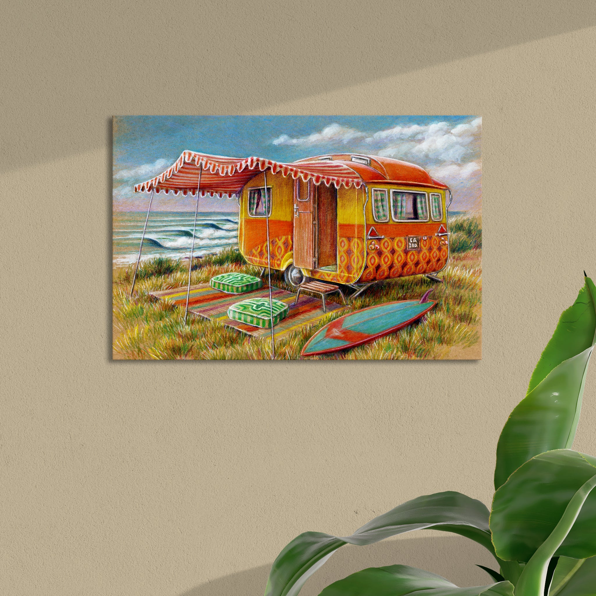 Featuring iconic Orange Caravan at Supers illustration by local artist Yvonne Robinson